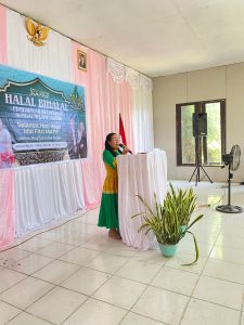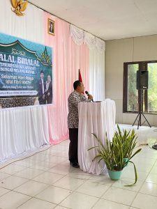 Acara halal bihalal diawali dengan doa pembuka yang dipimpin oleh perwakilan KUA, Ust. Muhammad Alby Ulil Albab, M.Pd. Selanjutnya, perwakilan ucapan halal bihalal disampaikan oleh Ketua TP PKK Ny. Bety Robert, Ketua Apdesi Antonius mewakili kepala desa, serta Bapak Budi Wahono mewakili tokoh masyarakat. Rangkaian acara ini semakin memperkuat ikatan silaturahmi antar unsur pemerintahan dan masyarakat.